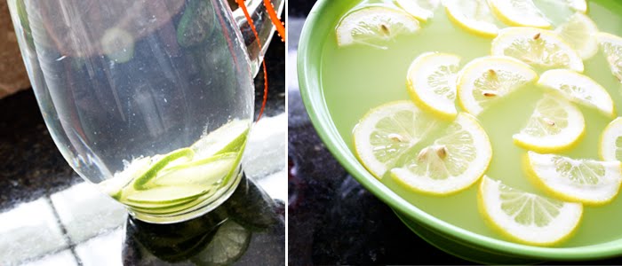 {Small Touches}Lime slices added to the water pitcher and lemon slices added to the lemonade added flavor, color, and a touch of whimsy.