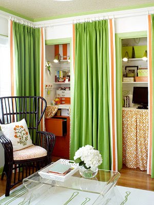 +{I like the idea of turning a closet into an office… taking the doors off maybe and replacing with fabric curtains like above? If you were a guest, what would you think if you couldn’t use the closet?}