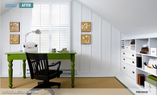 I spent a good part of yesterday and this morning looking for inspiration on how to accomplish this very daunting task since I currently love the way every part of my house is laid out and decorated. I got excited though when I found all of these super fun, cute, yet tiny office spaces within a guest room or even a re-purposed closet.