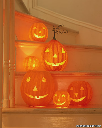 I was spending a date night with my husband at Barnes & Noble and sifted through the most recent issue of Martha Stewart Living. There was a cute section on carving pumpkins with a link listed from her website with 50 pumpkin carving templates. So, of course I went hunting on her website and found some other really great ideas (click on the links for step-by-step instructions) that I thought you might like. {all images below are from marthastewart.com}