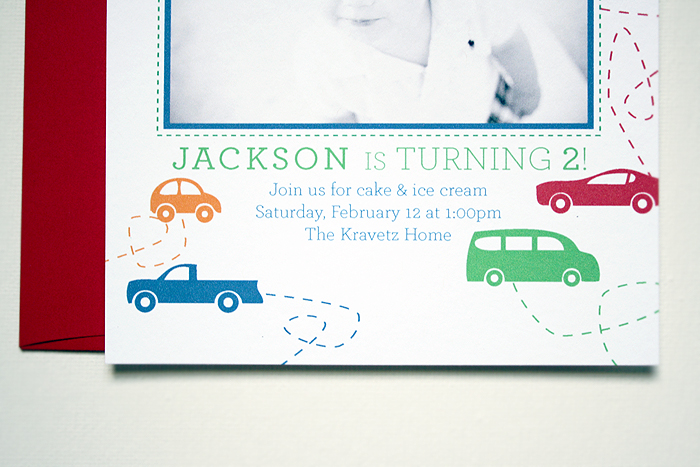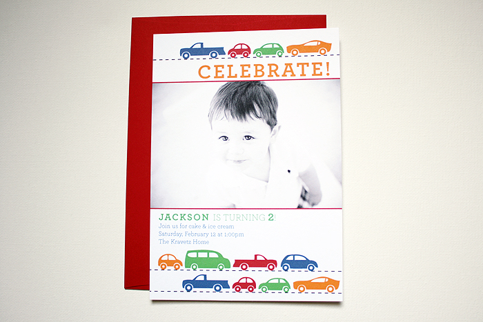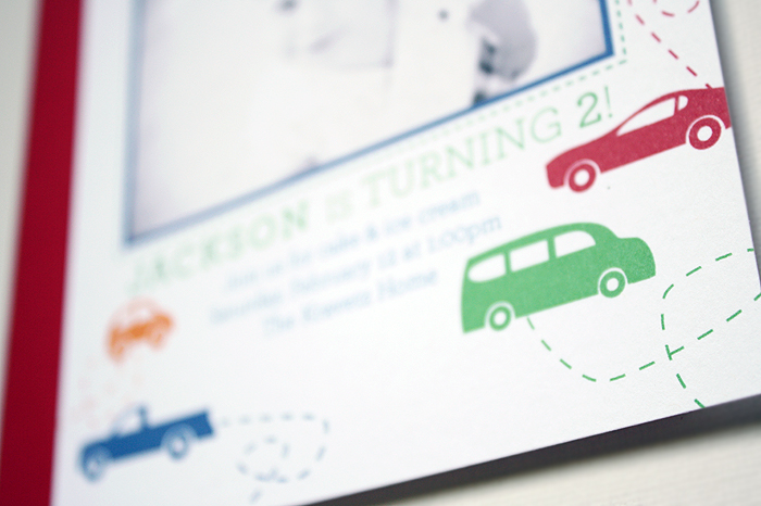A delightful little party invitation perfect for the little boy who is obsessed with his cars and trucks.